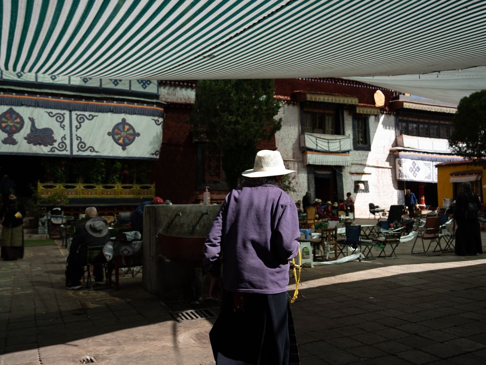 It's autumn in Lhasa, Tibet. Inside a Tibetan Buddhist monastery, local believers are getting ready for a gathering, and an elder is walking through the courtyard.