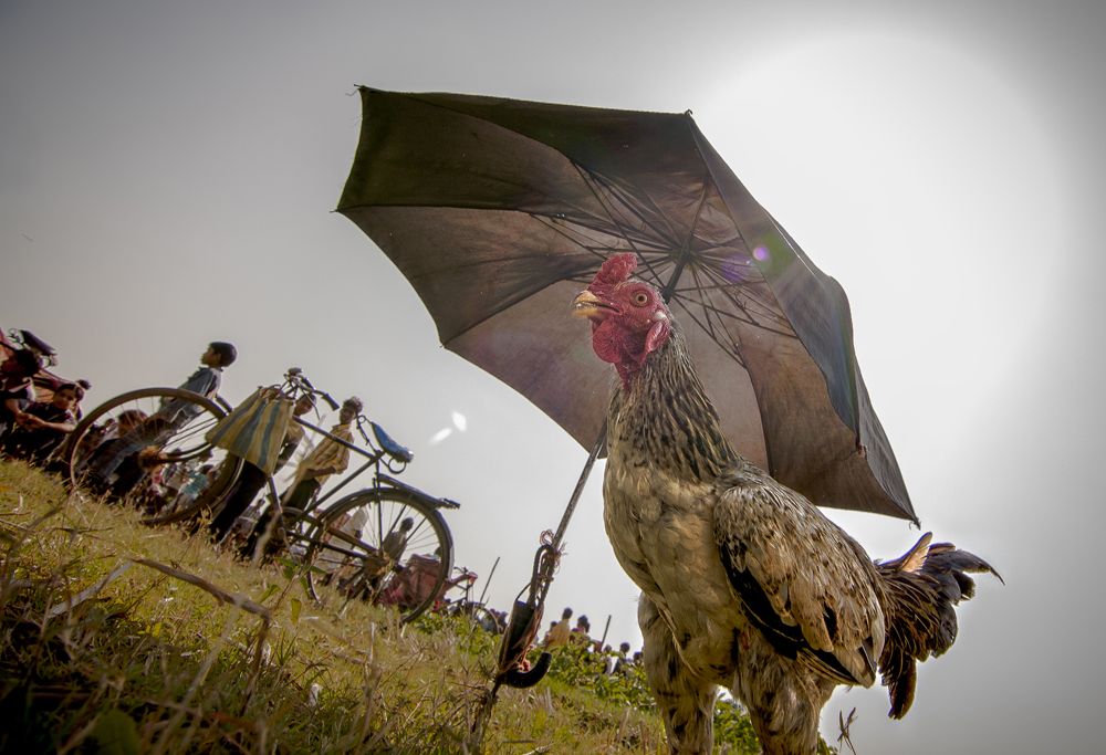 After the harvest and during the winter solstice while treading along the dusty path of rural Bengal if you find yonder a crowd of local tribal people gathering with cocks in their hands or on their shoulders and hear the shout ' Juhar Juhar Marang Buru Hilli' (hail Marang Buru the saviour) , be certain that you are heading to an arena of cock fight. Yes the cockfight is still in vogue in the rural India especially among the tribal communities. The owner of the gamecocks take their cocks to the arena to try their luck in a bout or two. The cocks fight instinctively for their own survival that ultimately results to the death of one or escape from the arena.