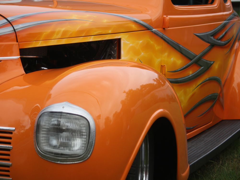 This is your all American Street Hot Rod. Very big in the 50s, slicked back hair rolled up sleeves on your T-shirt and a cigarette behind your ear. Always a girl in a poodle skirt. This is the ultimate American street machine. The paint job is so glossy and has such a 3d effect, it is just perfection.