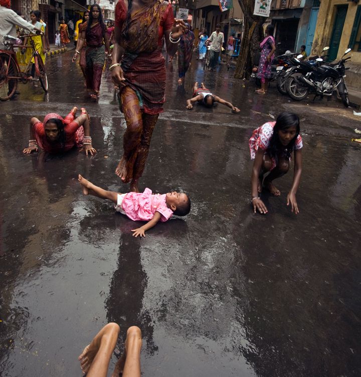 An ancient ritual called 'dondi' observed in many parts of India. It is considered auspicious to cross over a child since children are supposed to possess the purest of souls.