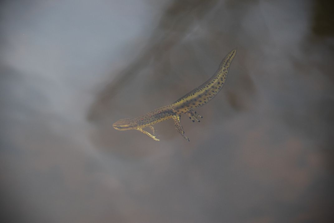 An Eastern Newt Suspended