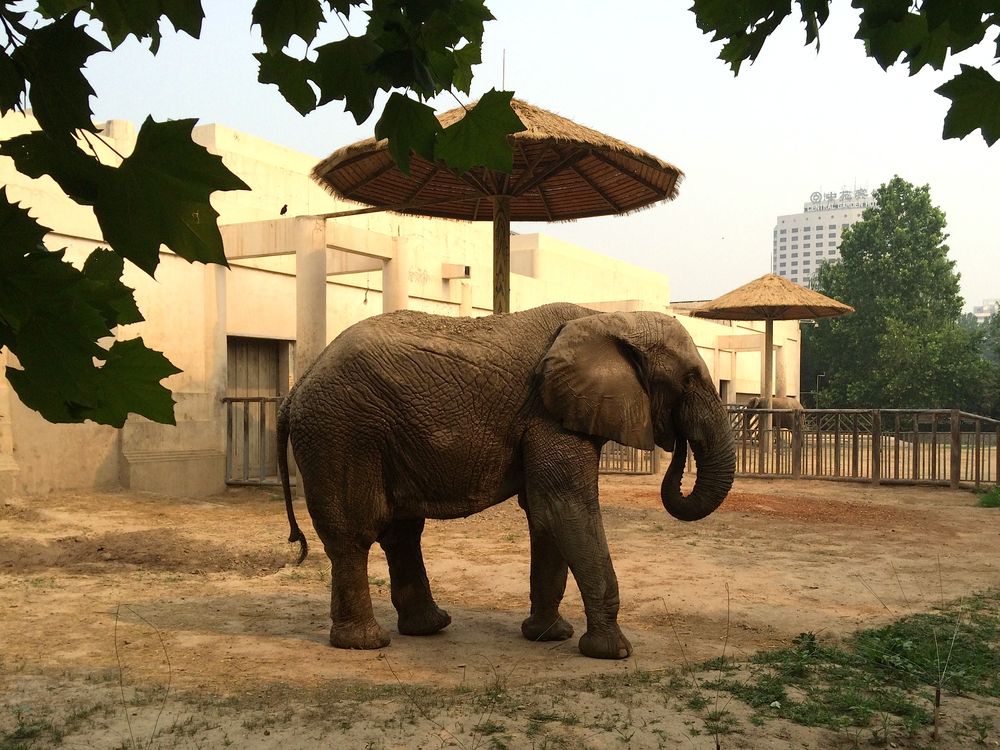 This photo was taken in the Beijing Zoo. I traveled to China on a service trip, and one of our activities was visiting the zoo. To me, this photograph is beautifully sad. The elephant is confined to a limited space and is located in the middle of the city (as you can see with the building in the background). It shows the cultural differences from America, where we have certain laws that protect animals.