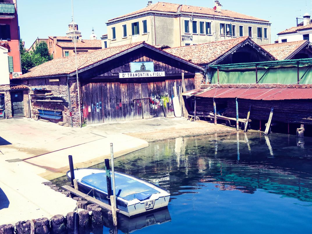 This photo was taken in Venice, Italy. An old man and his son used to construct gondola boats at this small factory (small canoe-looking, Italian boats used to travel around Venice). The only way of travel through the "streets" of Venice is through the water ways on small motor boats and gondolas or by foot.