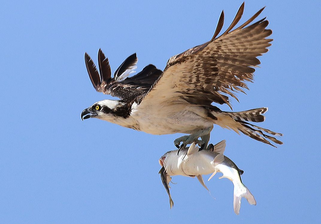 THE OSPREY WITH A BOGO. This Osprey was unawares when it snatched this unsuspecting catfish from the waters of the Atlantic, that the meal was actually eating its own meal.
