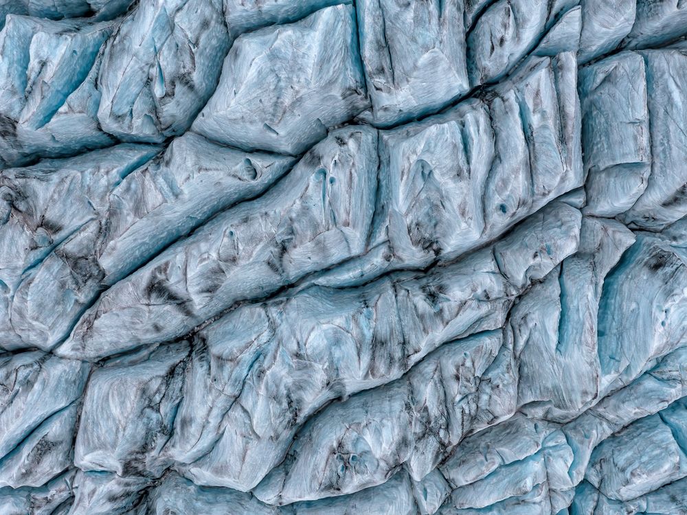 Looking down from above at the massive Vatnajökull Ice Cap in Iceland, I was able to capture this image with my drone in August, 2021. The patterns in the ice that are better exposed during he warm summer months are both amazing and beautiful.