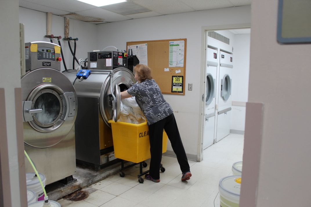 Anita is a soon-retiring hospital laundress. She has collected, sorted, washed, dried, folded, re-distributed hospital linen with skill, precision, style and love for a career time. She is the person in the back room that no ones knows, recognizes or appreciates. The hospital employees just grab and go and don't stop and wonder....I want to change this. Here's to the unsung heroes that make our world a more comfortable place. What can compare to a snow white, crystal clean, warm wash cloth on ones face when one is sick????