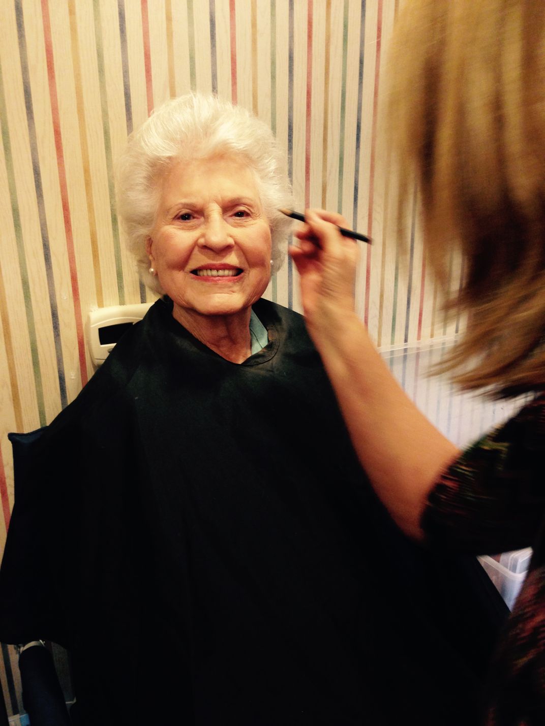Ann Watson, 94, has her makeup done before participating in a special event.