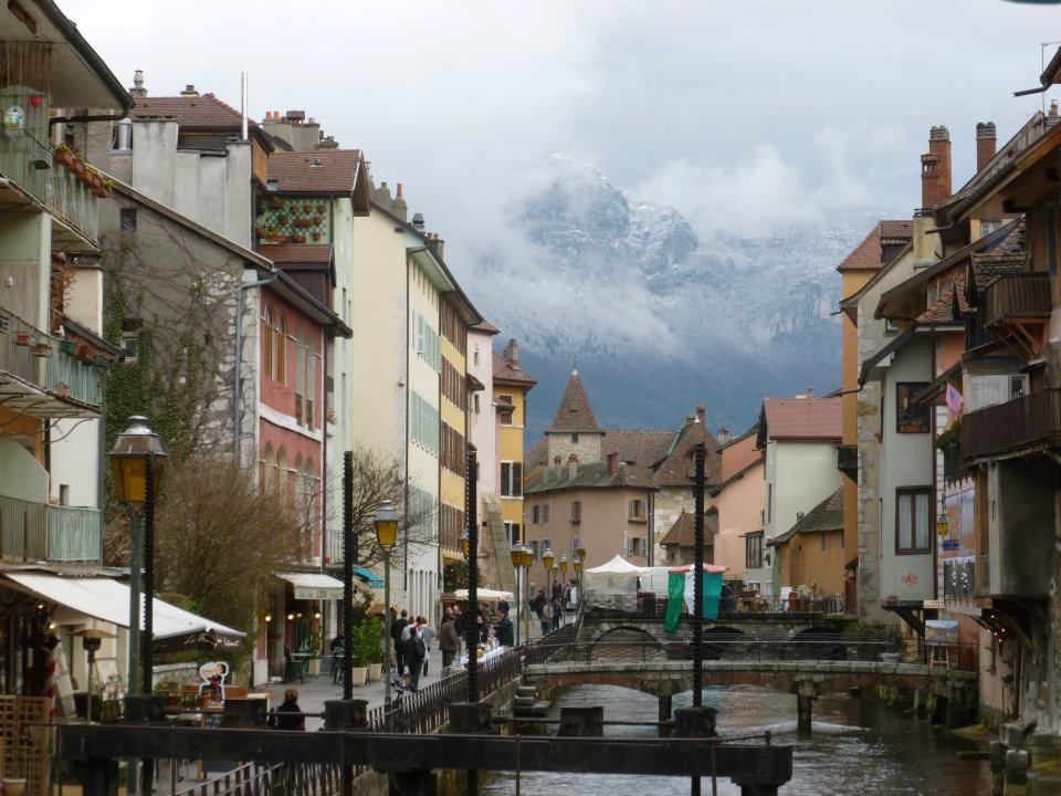 Annecy, France shadowed by some of the Alps