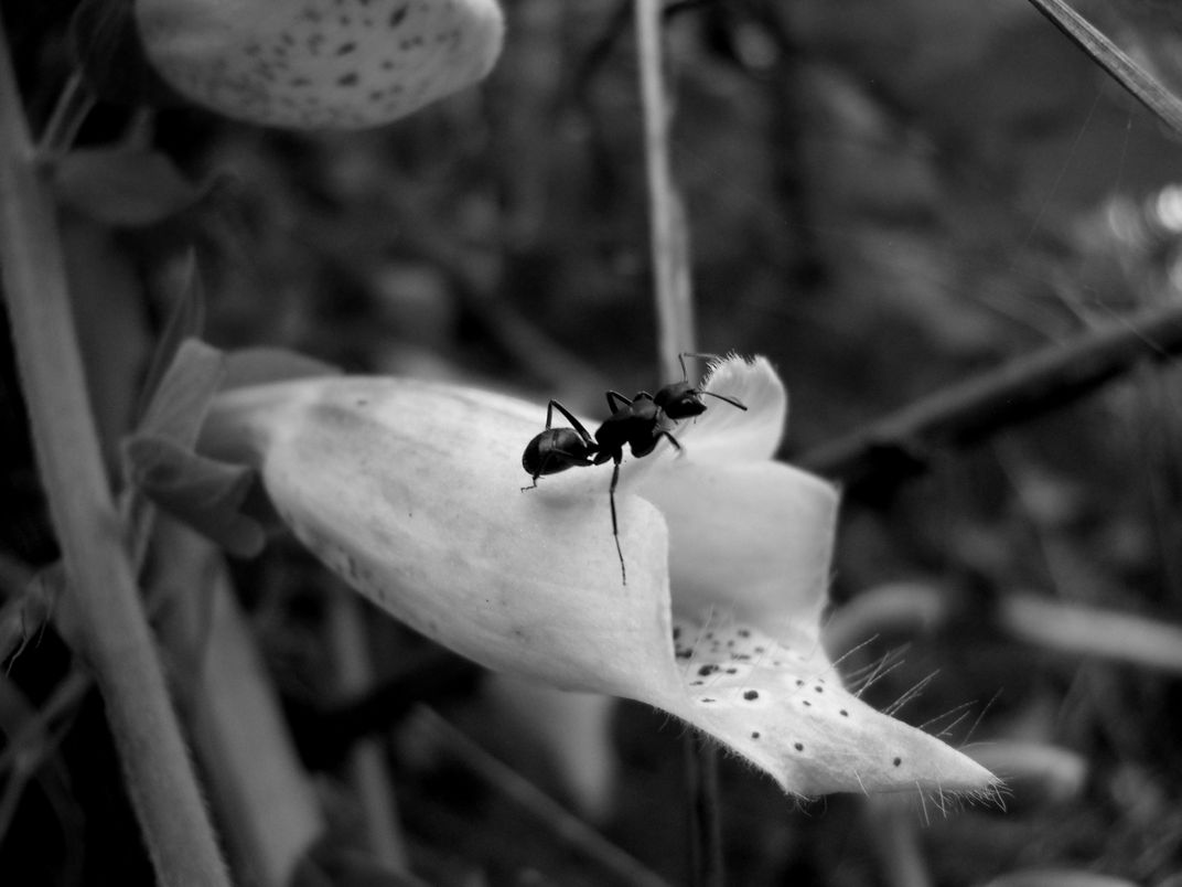 Ant hanging out on a foxglove.
