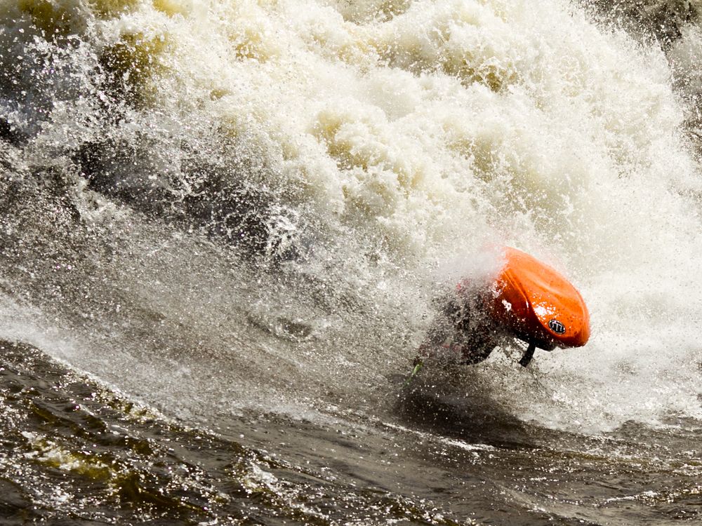 Anthony Yap surfing the "Minibus" wave on the Ottawa River.
