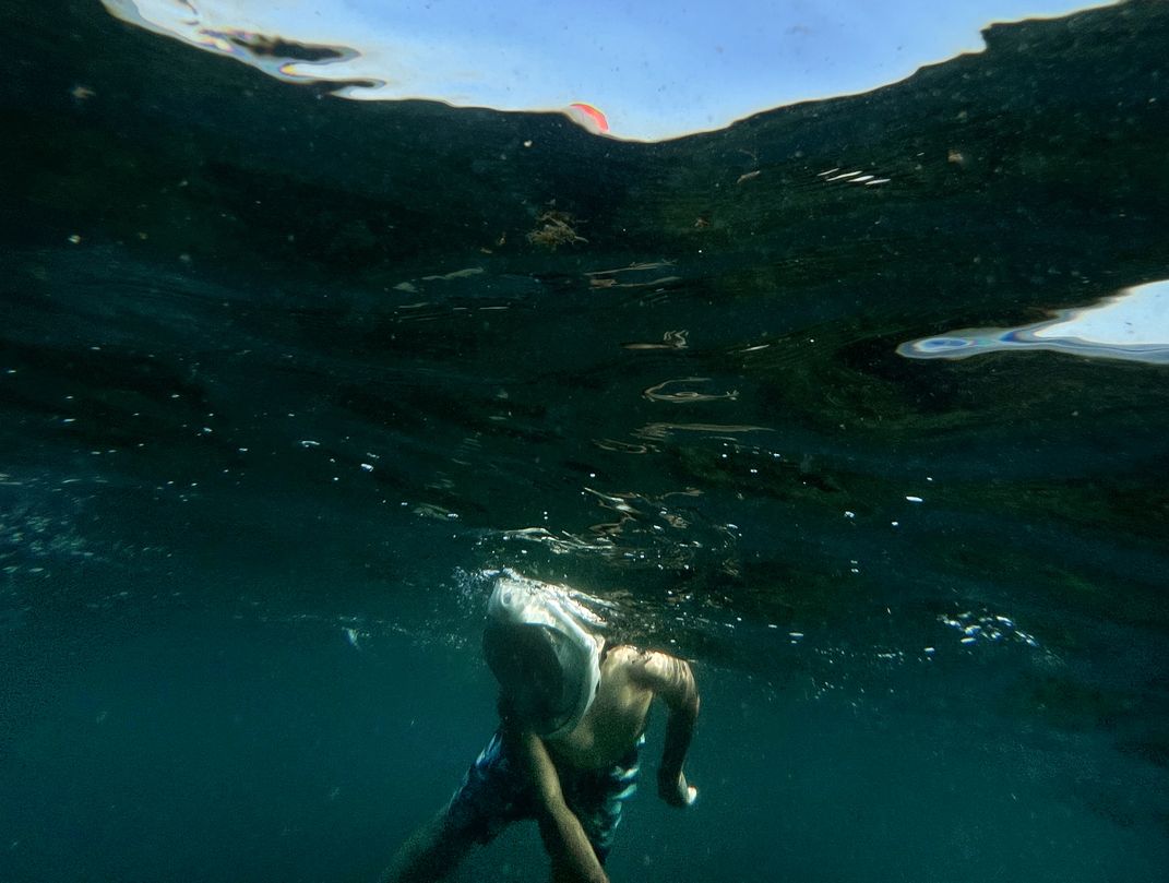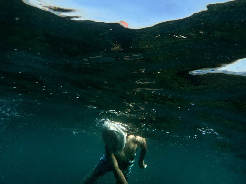 A kid vaults in wonder as he explores the underwater for one of his very first times. (Part of a wider project on the growing concerns about the impact of ''screens'' on the minds of children. The project tries to explore the issue - potentially tragic and hard to photograph - through some possible solutions or antidotes humans are trying. In this case, kids are encouraged to enter in deep physical contact with nature and with the sea in Sicily.)