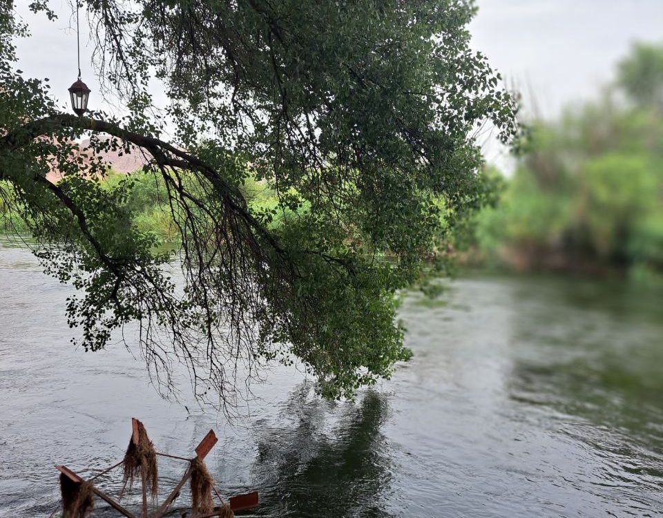Rest under the shade of a tree close to a thin branch of the border river Aras in the East Azarbaijan province of Iran, you can also have some meal in the buffets nearby.
