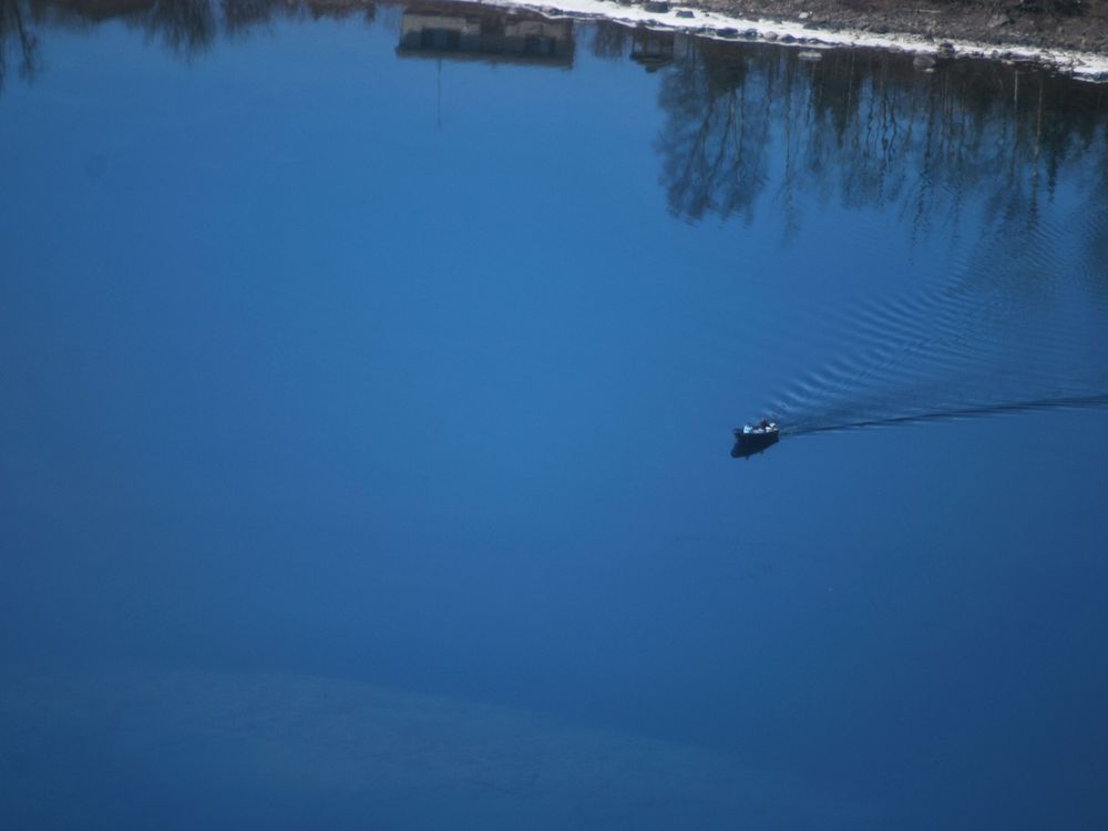 arial view of a boat on Lake Superior