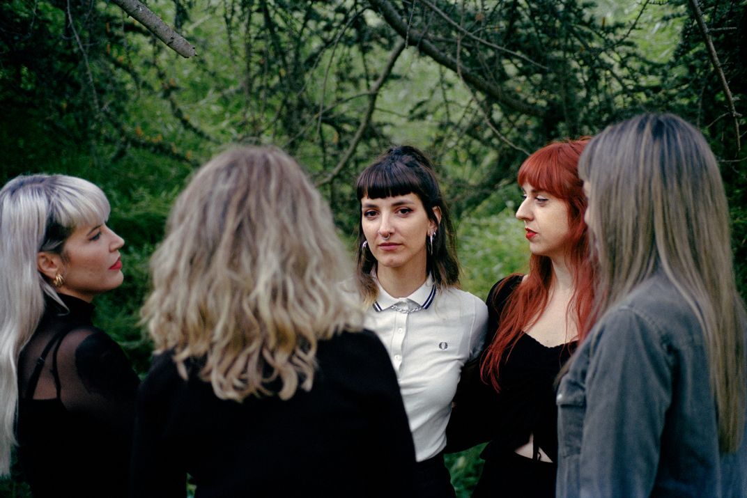 Taken in Parque del Oeste, Madrid, this photograph depicts members of the Artemisia Punk collective. The group researches, preserves and disseminates punk culture through a feminist lens, emphasizing collective experience and collaboration.