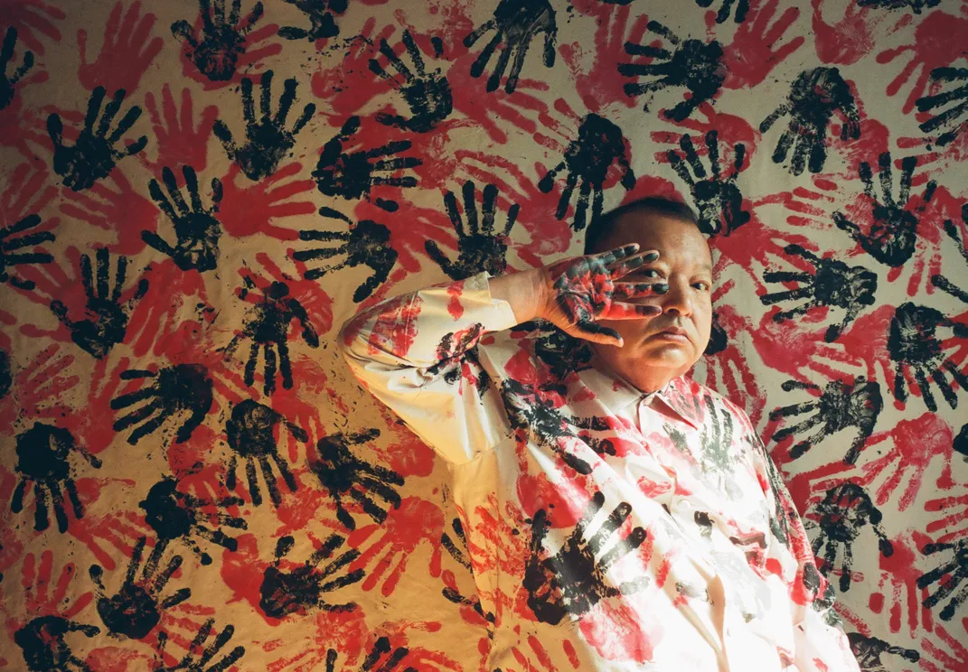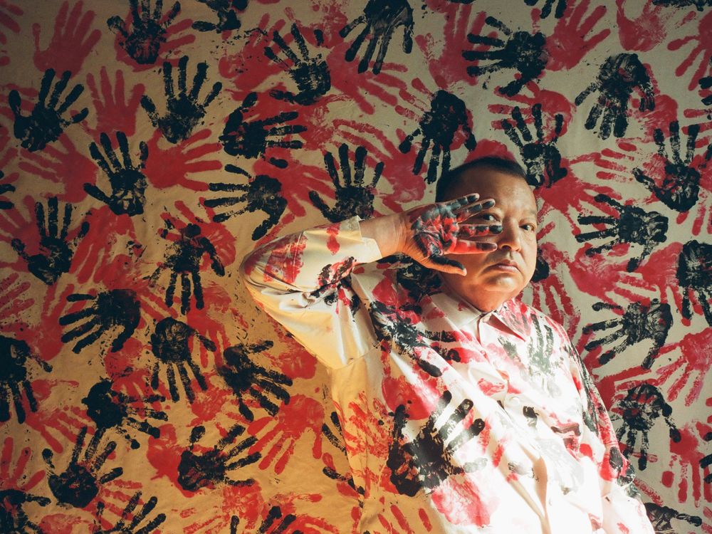 This work is a strange and beautiful portrait of a man standing in front of a background with a handprint pattern such like a cave painting. Man's dirty hands and face emphasize the strangeness. The author approached ancient art in search of images that no one else had created. The pattern was dyed by the author because he is a photographer and fashion designer. "ARTIST" is both the title and the author himself.