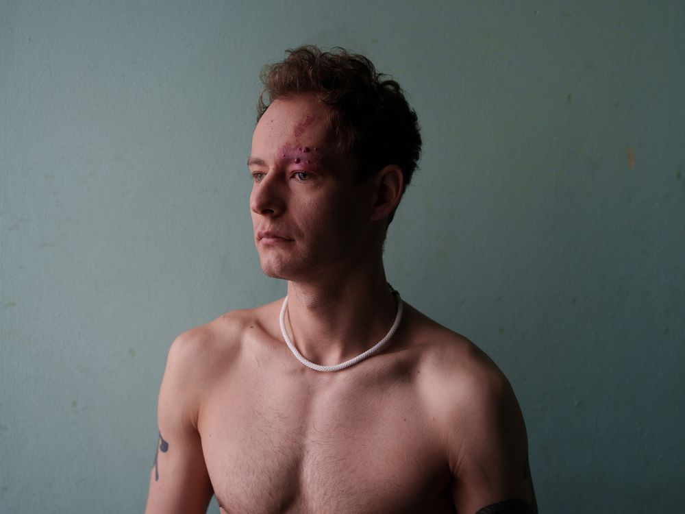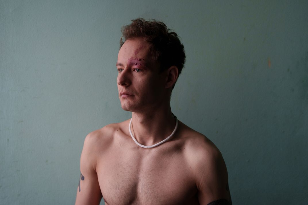 Portrait of a circus performer without makeup during a break between performances.The genre he works in is clowning.