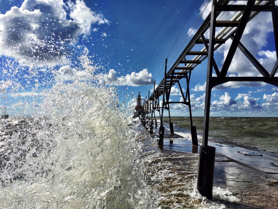 My father and I both shared a passion for photography. We had our favorite spot in St. Joseph, Michigan where we always took photos of the lighthouse. This past June my father passed away, and while I was at our family summer home, I took a walk along the beach to take some photos. As the waves crashed onto the pier I caught the lighthouse peaking through the water.