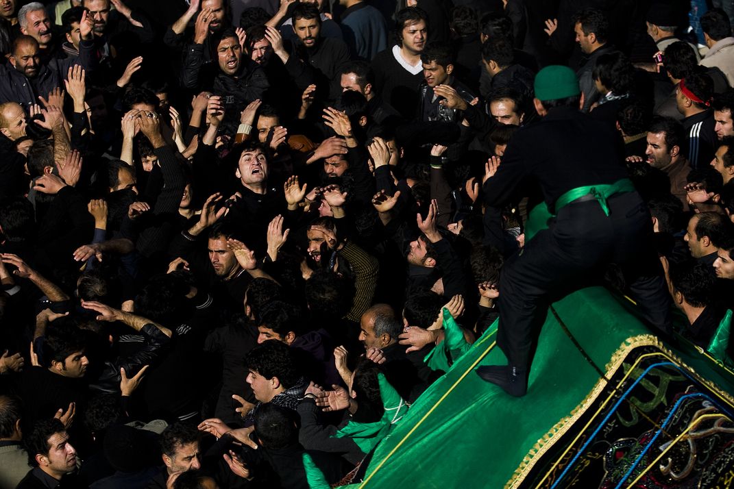 Ashura ceremony, people mourning for Imam Hossein(holy man who achieved martyrdom 1400 years ago)and carring a simbolic Icon