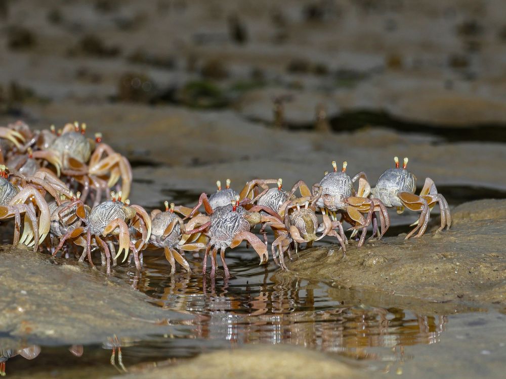 Asian soldier crabs (Dotilla myctiroides) on the march