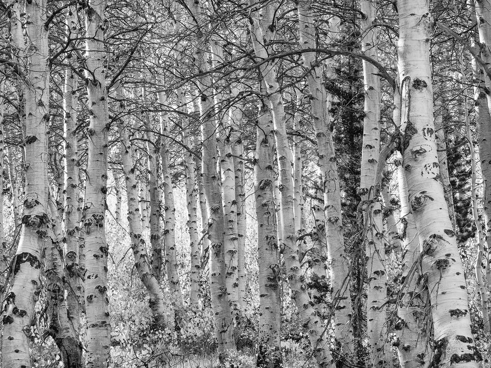 A clump of trunks in an aspen grove in the eastern Sierra Nevada Range, Mono County, Calif.