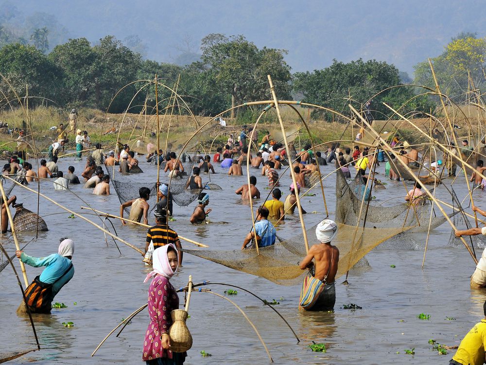 Assamese villagers participate in community fishing during the Bhogali Bihu celebration at Goroimari Lake in Panbari village, some 50 kilometers (31 miles) in Guwahati,Assam, India, Sunday, Jan. 13, 2013.