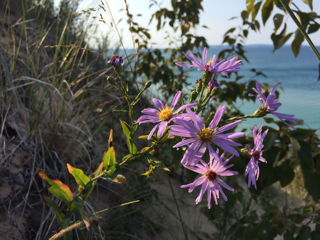 A cluster of Smooth Asters along the trail on the open Dunes at Pyramid Point over looking Lake Michigan.