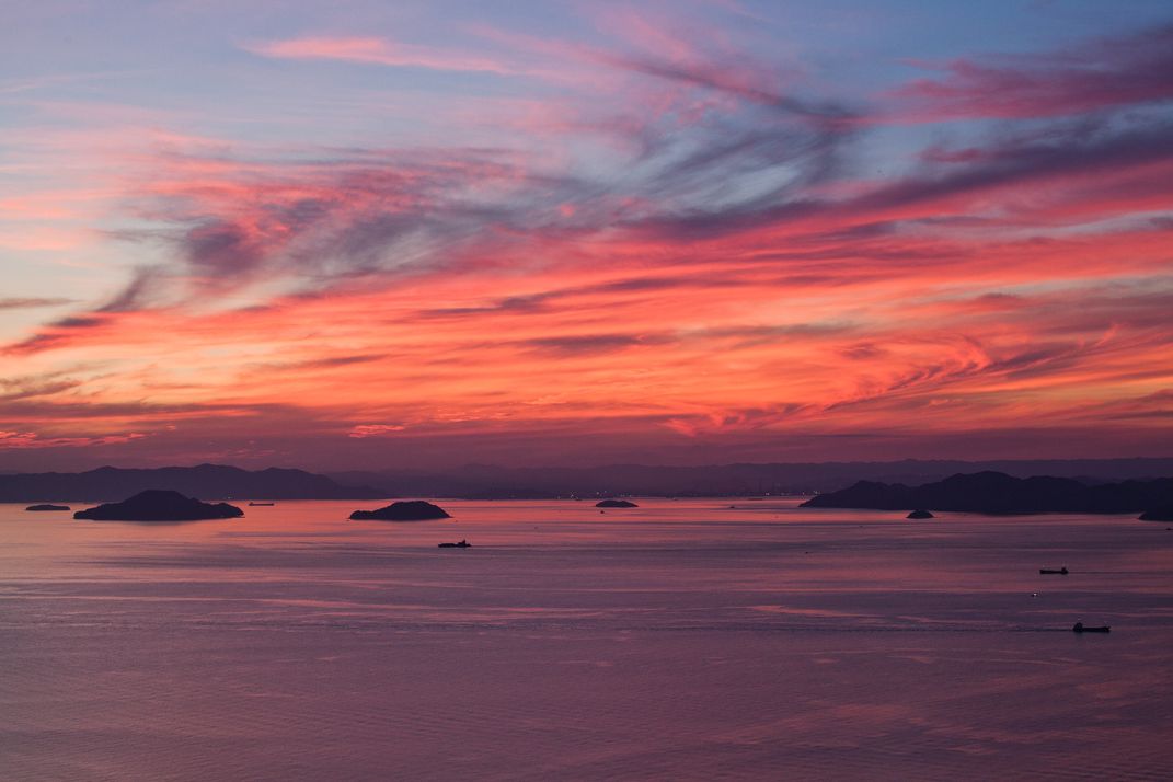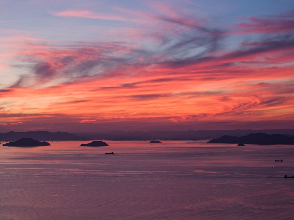 At sunset, the Seto Inland Sea turned a fiery red.