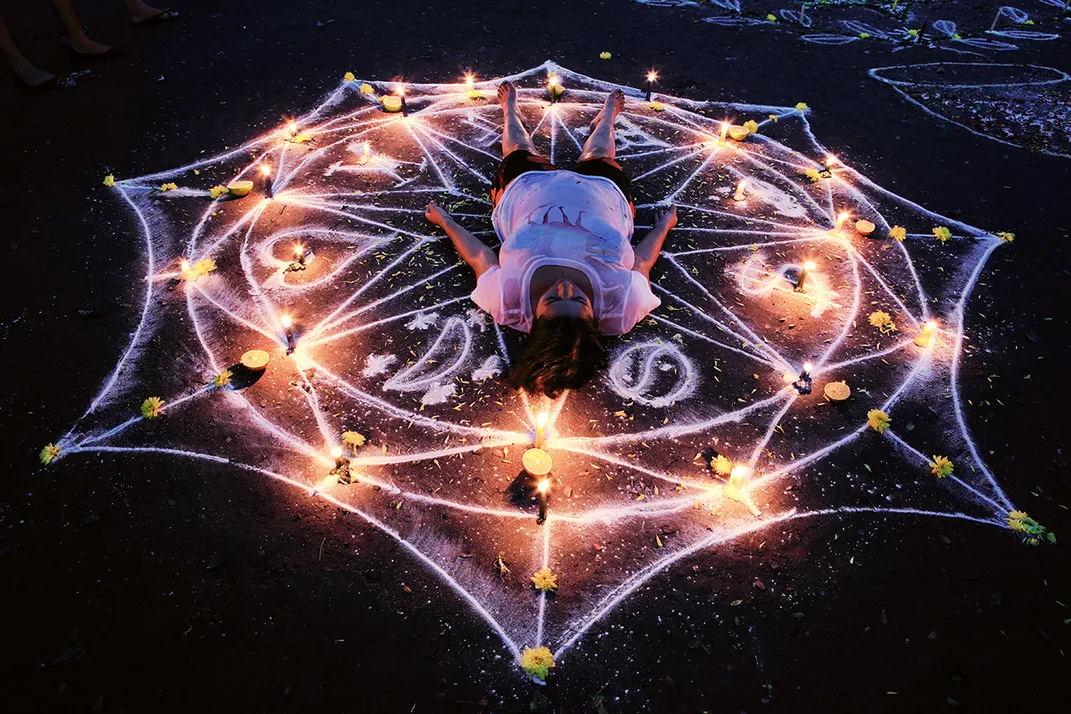 At the pilgrimage of Maria Lionza, a woman is placed inside the "oraculo", the oracle awaiting the spirits. The oracle serves as a focal point between the cosmos and the earth for powers of healing a