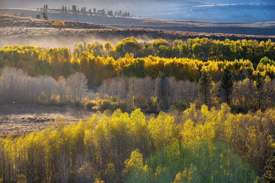 Autumn evolves in the aspen groves near Conway Summit, California.