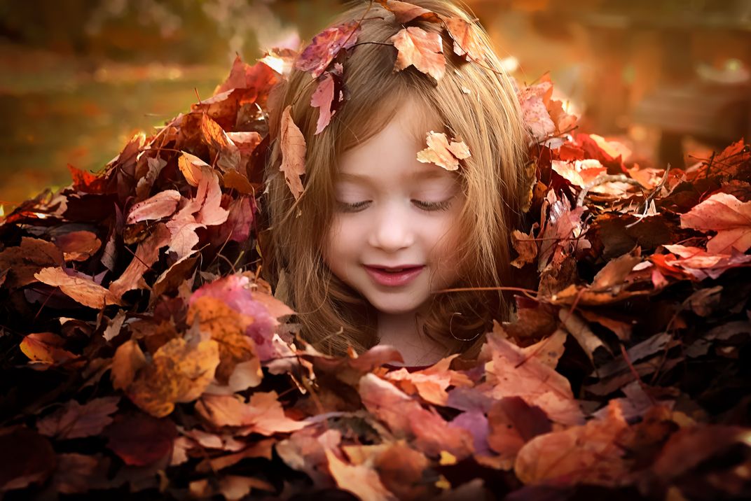 My daughter's red hair makes hiding in leaf piles a perfect hiding spot!