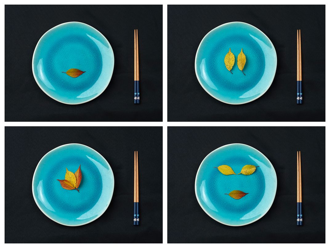 The series arranges a collection of autumn leaves on a plate by a pair of chopsticks. By altering the configuration, each image imparts different implications and invokes varied imaginations. The core idea behind this series is that the vibrant colors of autumn serve as a visual feast, almost as if they could be enjoyed as a meal.