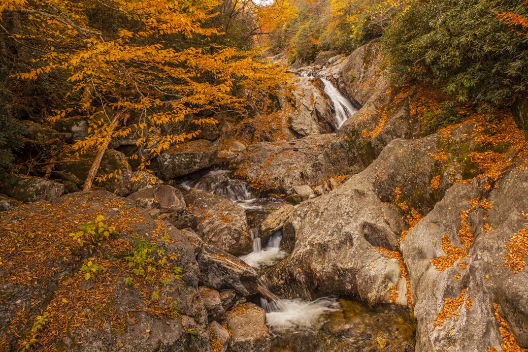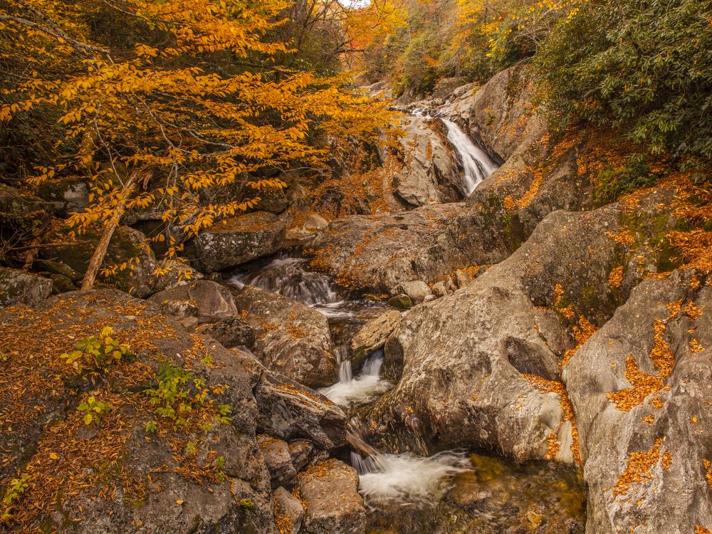 We visited the Blue Ridge Mountains in the fall and stopped at the Graveyard Fields. A short hike took us to this beautiful stream covered in orange leaves with cascading falls.