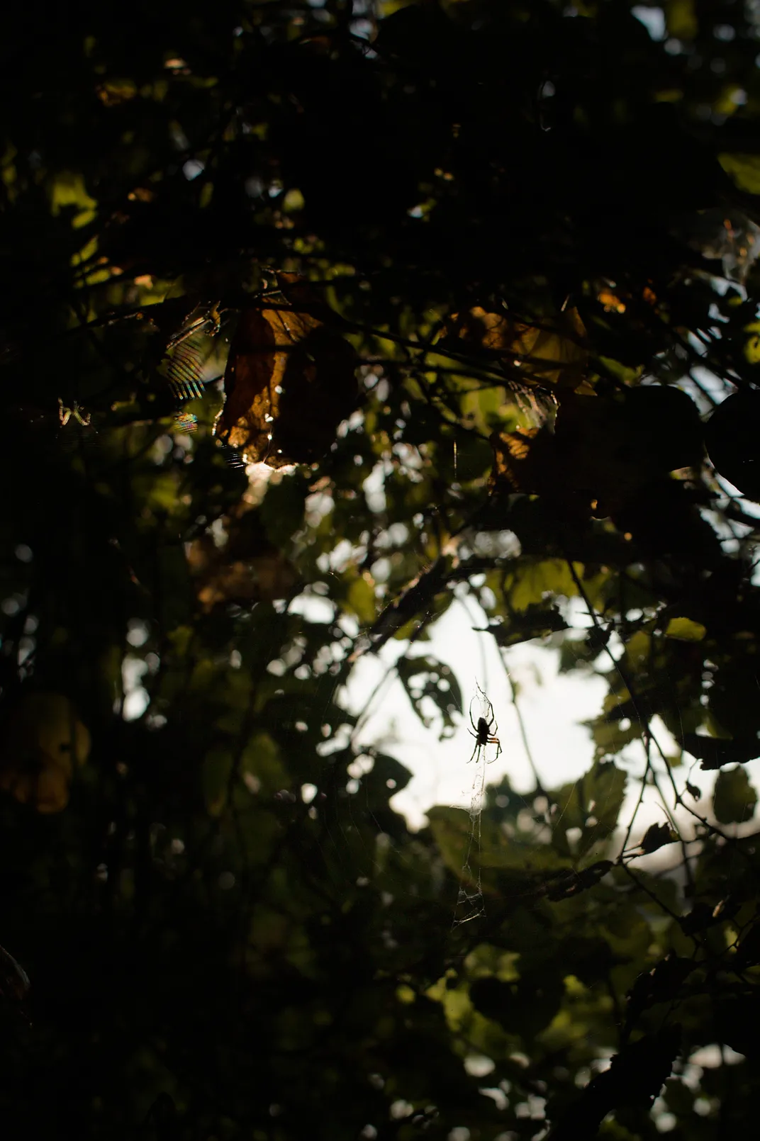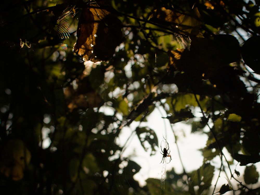 While hiking through a local nature preserve, I captured this silhouetted shot of a spider in the canopy. Without realizing, I caught a cool refraction in the web (top left), too!