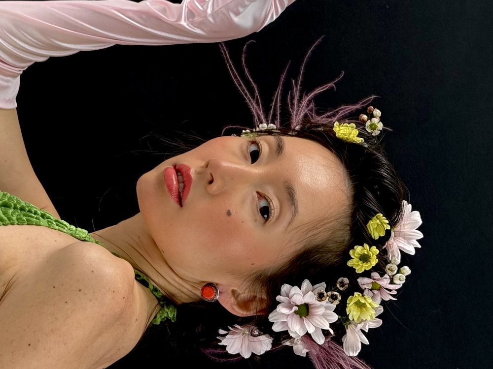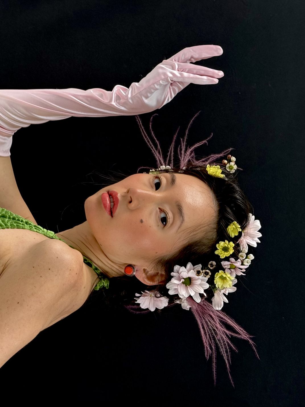 This conceptual photo explores spring as a living force. The model embodies transformation — like a flower opening to the world. Soft light and natural textures reflect renewal, tenderness, and the quiet power hidden within stillness.