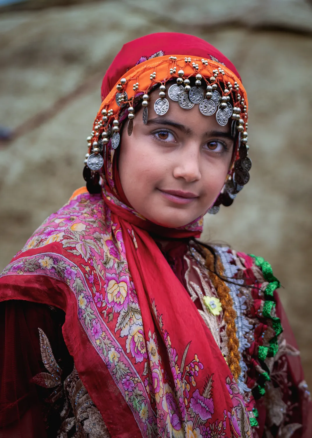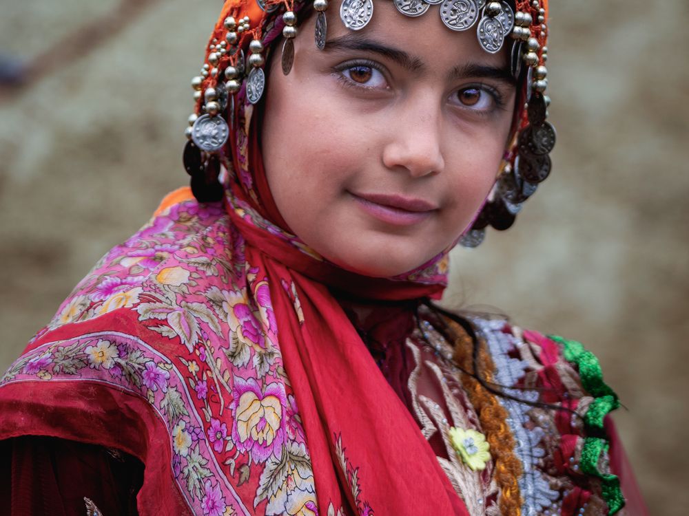 A teenage girl from the Qareh Qiyeh nomads of East Azerbaijan, wearing traditional clothing that reflects the beauty and dignity of the women and girls of this community. This photo was taken on the sidelines of the Harna Nomad Festival. The Harna Festival, a cultural and sports festival of the Qareh Qiyeh nomads in Kalibar County, is held every year in May to celebrate the spring migration of the Kalibar nomads. The festival has both cultural and sports sections. In the sports section, events include horseback riding, archery on horseback, arm wrestling, beach volleyball, wood pulling, tug-of-war, and traditional wrestling. Ritual and local performances form another part of the festival.