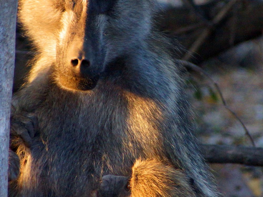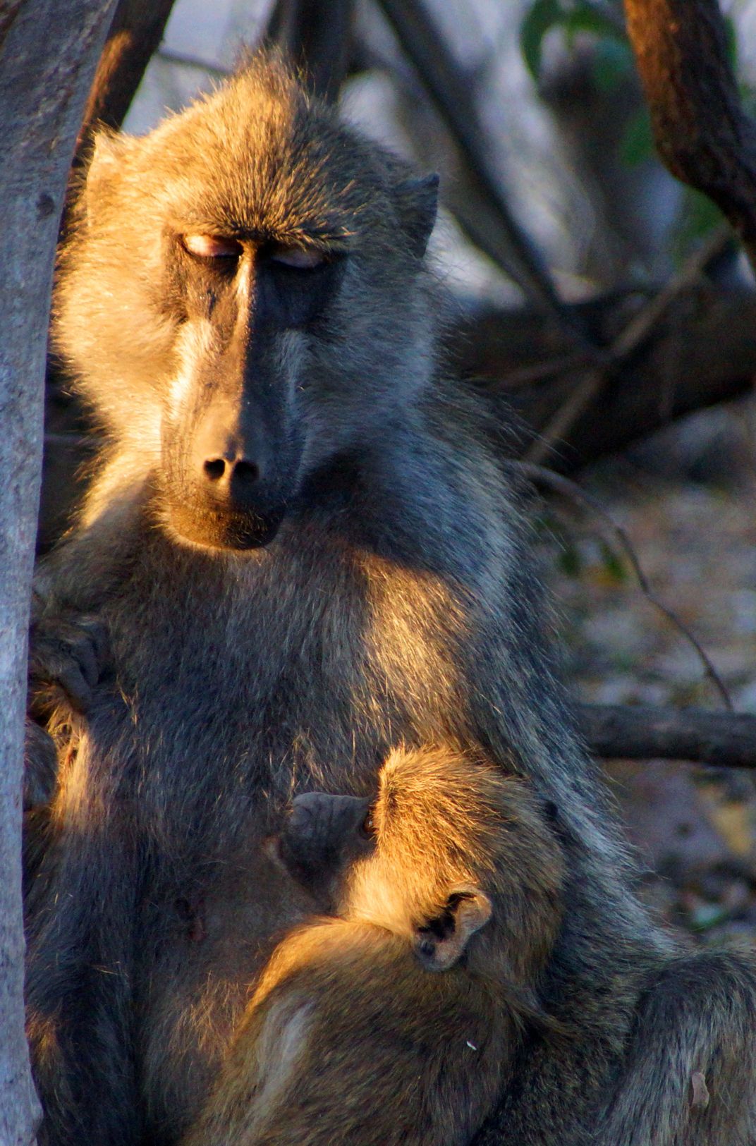 Baboons at Chobe, Botswana, Africa. The mother's gaze at her baby was so beautiful.