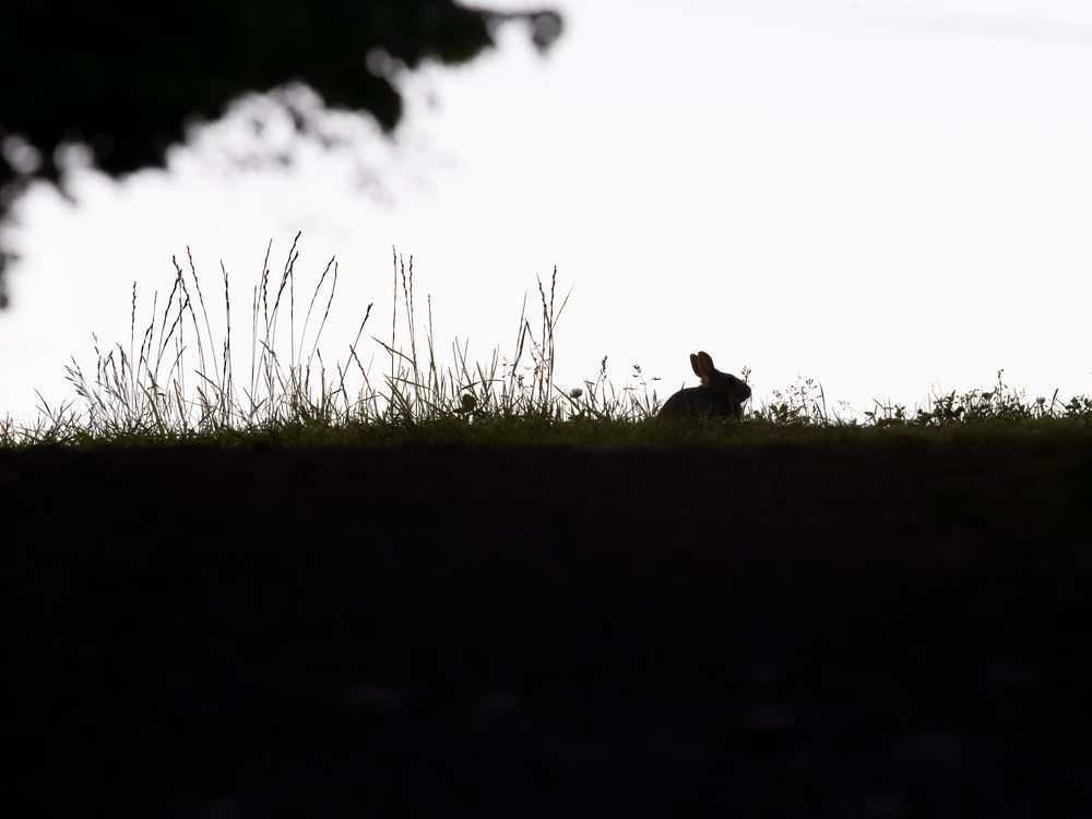 This sweet baby bunny was at the top of the trail as the light was falling. Perfect silhouette among the grasses as it was seeking its evening snack.
