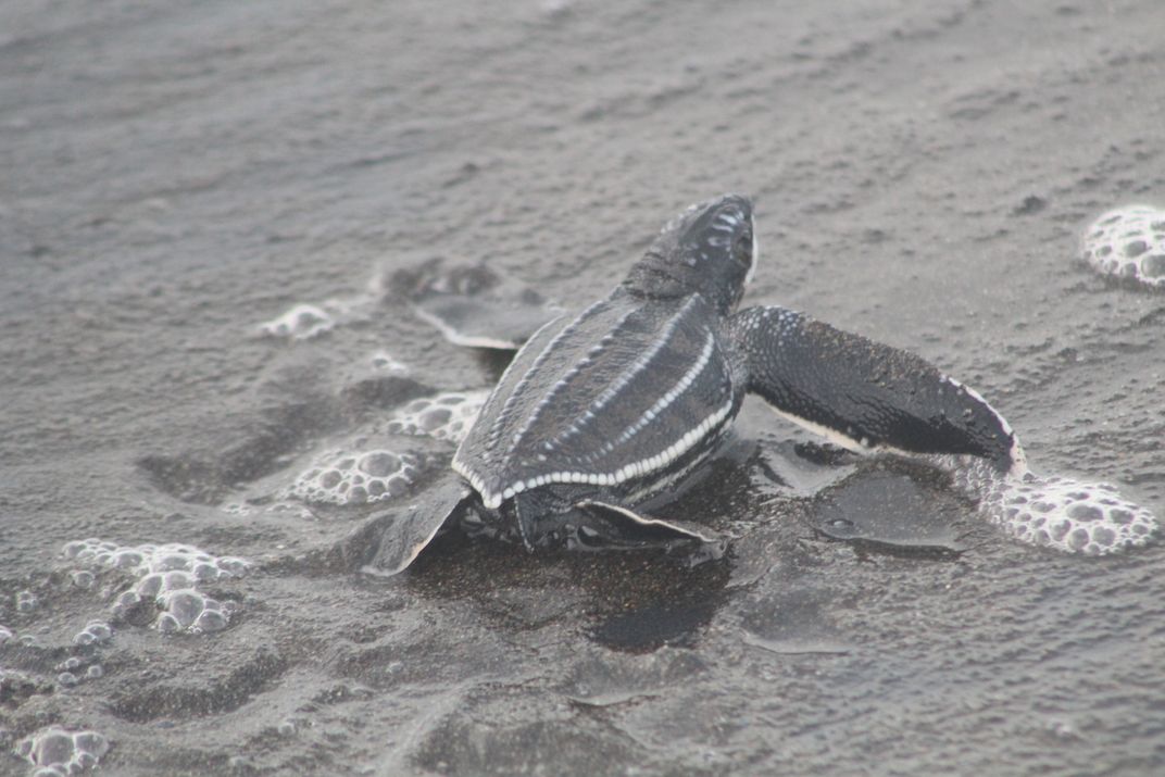 I was volunteering for a Turtle program on a remote island in Costa Rica during Leatherback hatching season and this was the only baby that had hatched out by the end of my shift (6:00 AM), after measurements & weight I got to let him/her go into the ocean.