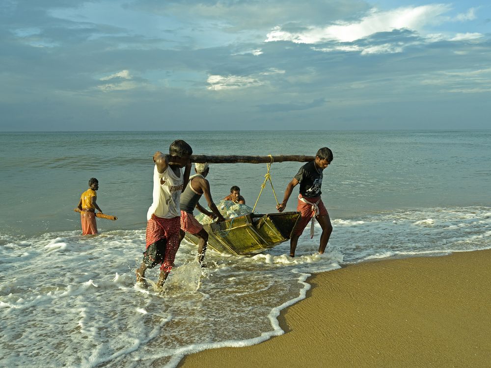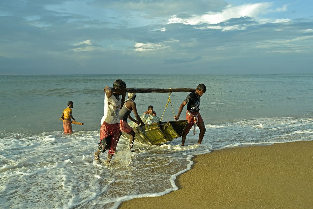 In the early morning, one by one fishing boat was returning with their catch. Just before touching the shore, fellow fishermen rush to the boat to help the boat to bring it to the shore.
