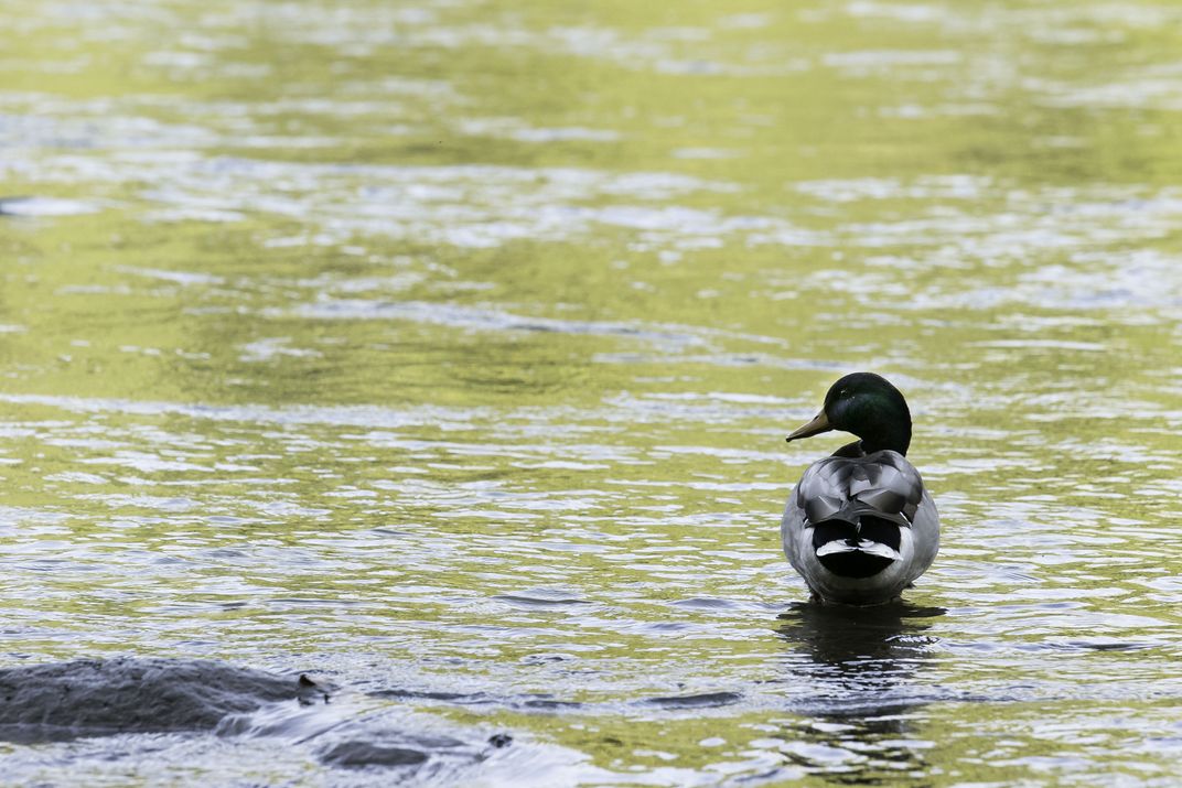 Backside view I was on the banks of the Chattahoochee River and this duck turned around showing me his backside so I snapped the photo.