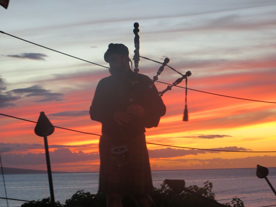 Bagpiper salutes the sunset every night in Maui, Hawaii.