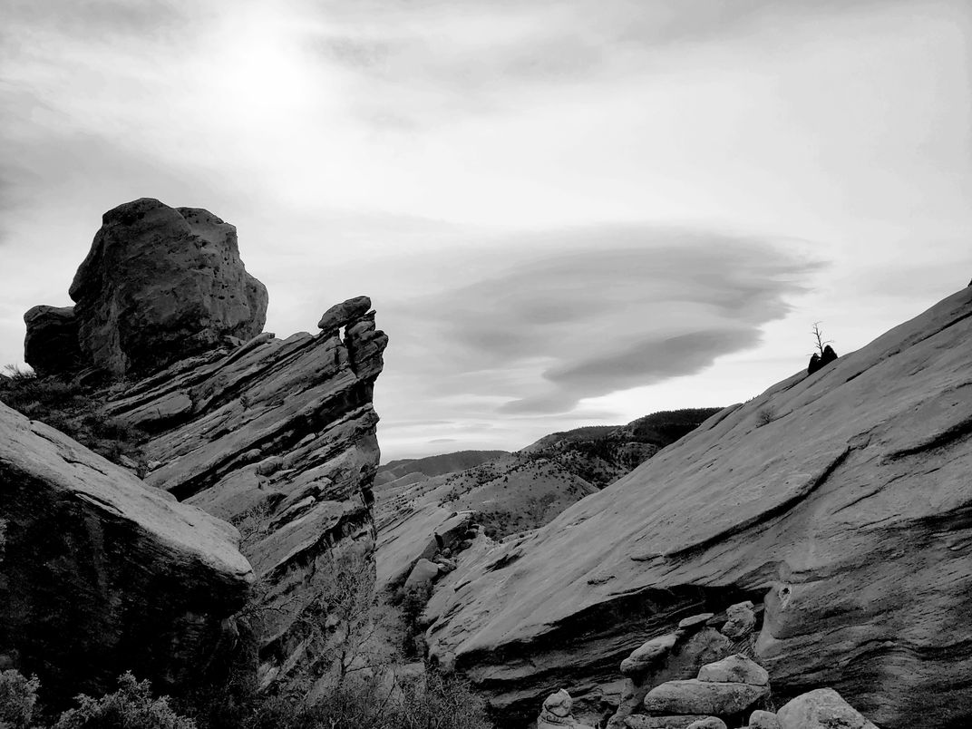 This photo shows the beauty and size of the Rocky Mountains and the details on them. Some boulders are balanced on the edge of a cliff as if a light breaze could topple them while others have layers of rock showing the erosion from centuries of weather. The trees show the determination of nature pushing through the hard exterior to reach the sky. The clouds give depth of how far away the distant mountains are.