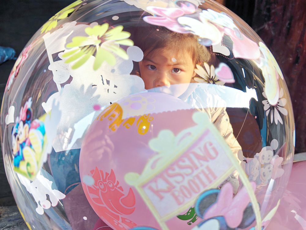 On February 10, 2025, a little girl playing with balloons in Shiqiao Town, Dazhou District, Dazhou City, Sichuan Province, China.