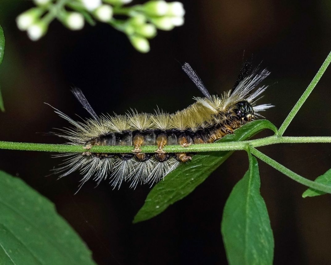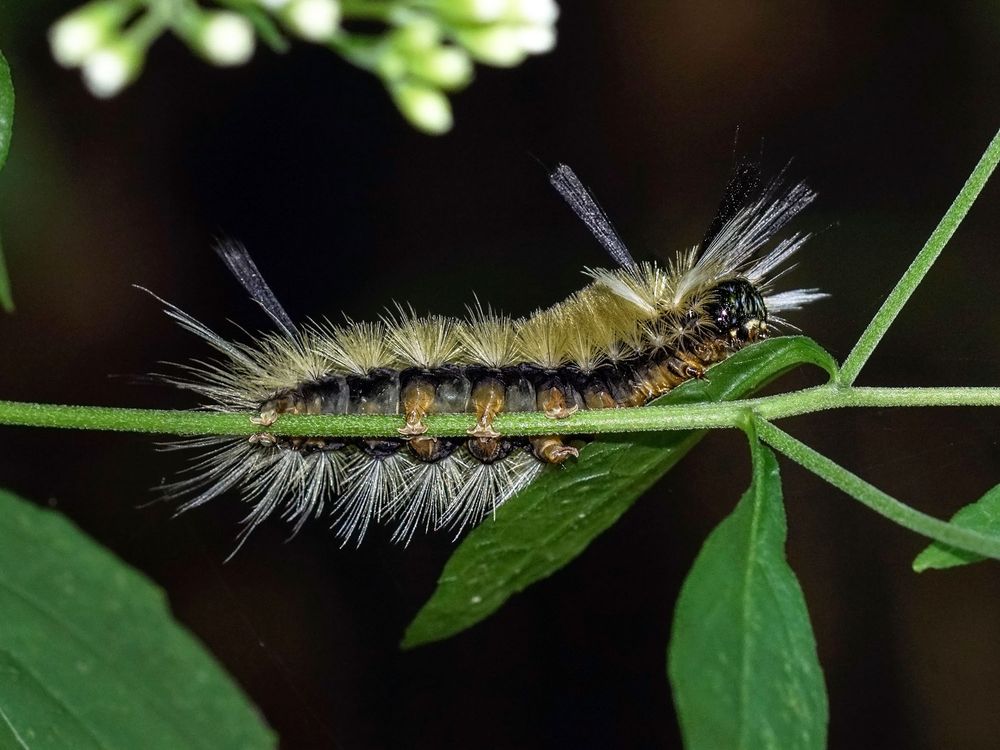 Banded Tussock Moth Caterpillar Eating Leaf