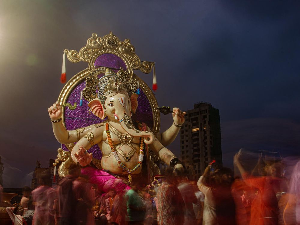 A towering idol of Ganesha rises against the evening sky as Mumbai’s Ganesh Chaturthi procession swirls around it. A long exposure turns the devotees into streaks of colour and movement while the deity remains perfectly still at the centre of the frame. The contrast between the glowing floodlight, the purple halo and the restless crowd captures the overwhelming energy of immersion night. The photo is a testimony to the intense devotion and energy of the Mumbaikars (as the residents of Mumbai call themselves) and thus is in my view a "peoples" category photo.
