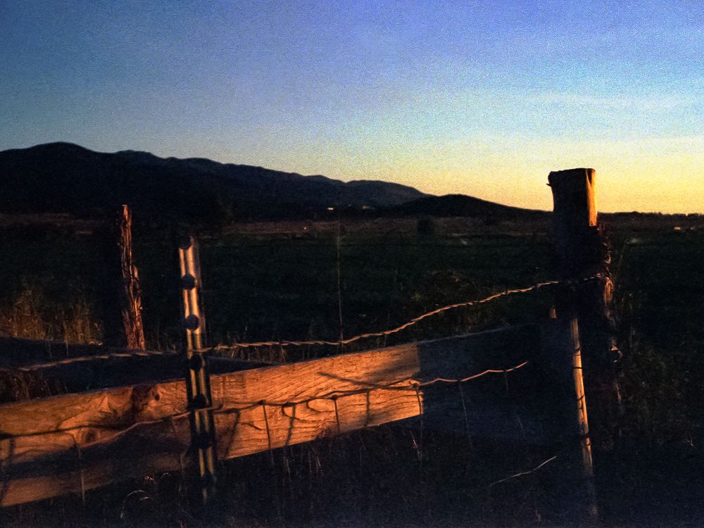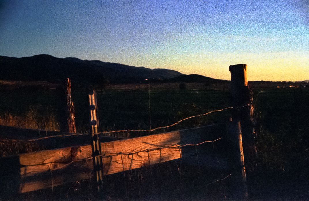 In Parowan, Utah, a farm and a lumberyard nestle beneath a mountainous ridge just off the highway. As the sun dips below the horizon, there is just enough light to observe the construction of this T-fence.