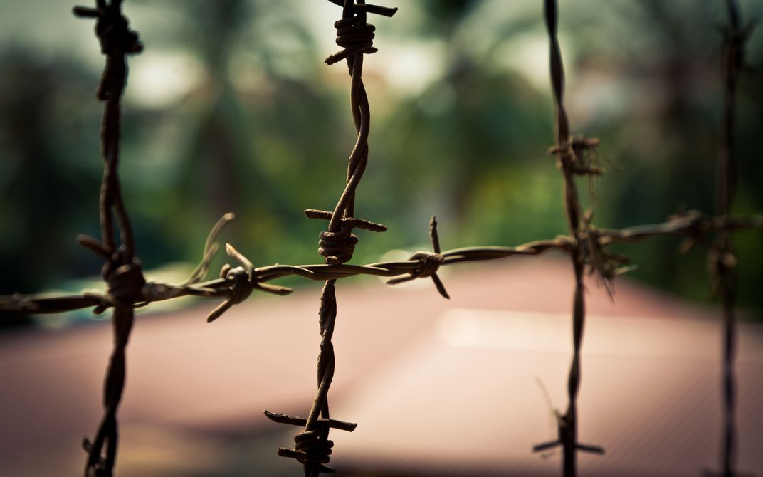 Barbed wire fence at the Tuol Sleng Genocide Museum, Phnom Penh, Cambodia