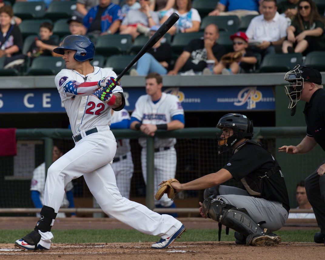 July 4th and baseball go hand in hand, and Joe Maloney of the Rockland Boulders arm sleeves show it in this photo.