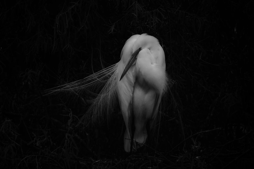 A Great White Heron cozies up for the evening.