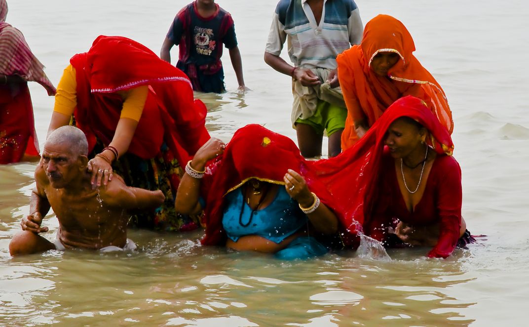 Bathing at gangasagar during Makar festival at sagar island in West Bengal